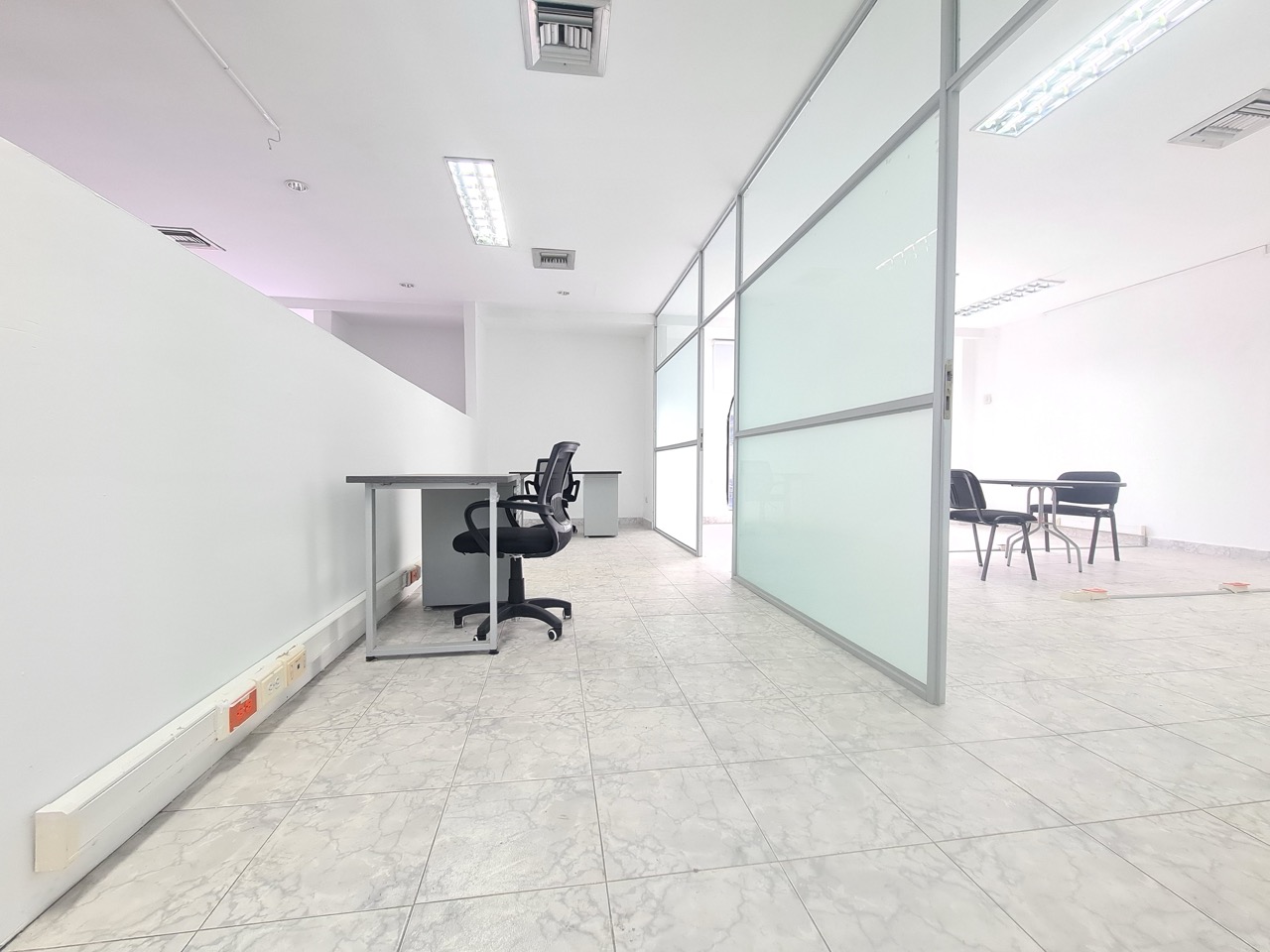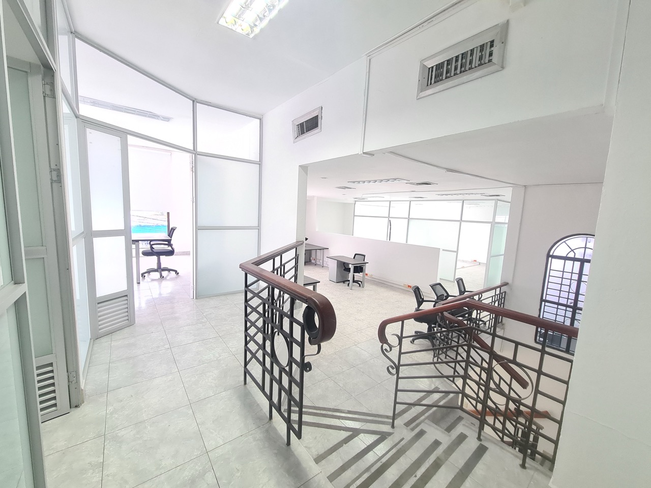 Espacios de Oficina: Cuenta con separaciones internas que facilitan la organización de oficinas privadas o áreas de trabajo colaborativo.